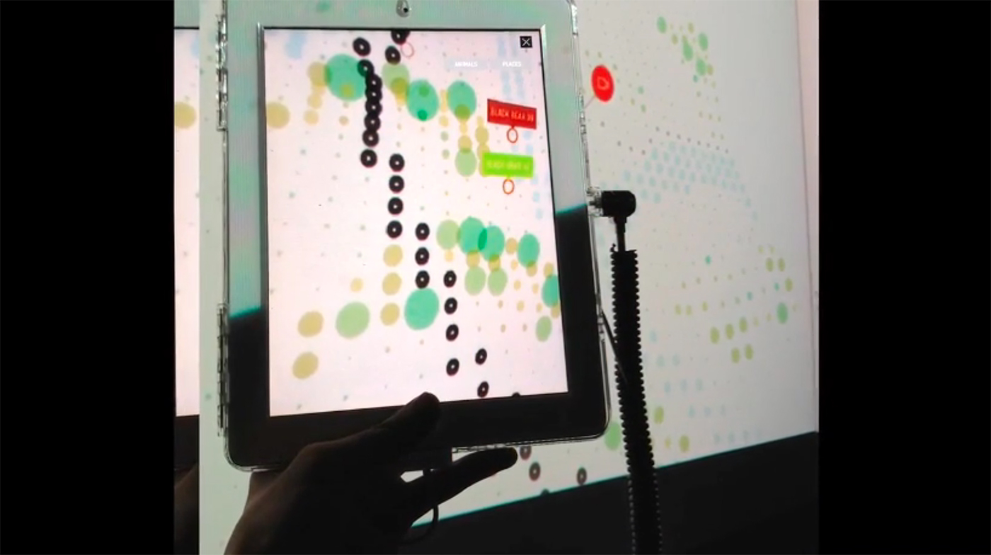 Most of the action takes place in “The Grid”, an abstract map of the park, comprised of thousands of stylized data points. The 3D landscape represents technology’s view of nature, and suggests the extent to which we have mapped, tracked and measured life in the park.