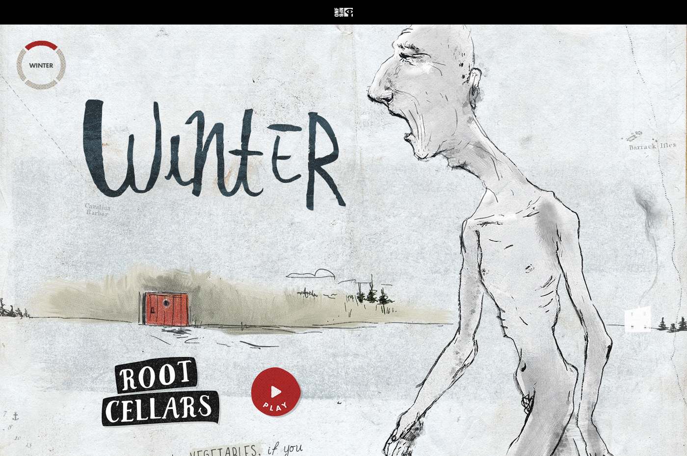“The Seasons” provided for a promising structure, lent itself nicely to a passing-of-time, intimate, sketchbook / diary visual style, and solved the opening of the site: the Hungry Month theme, and our first chapter, winter, could be introduced right off the top as one and the same.